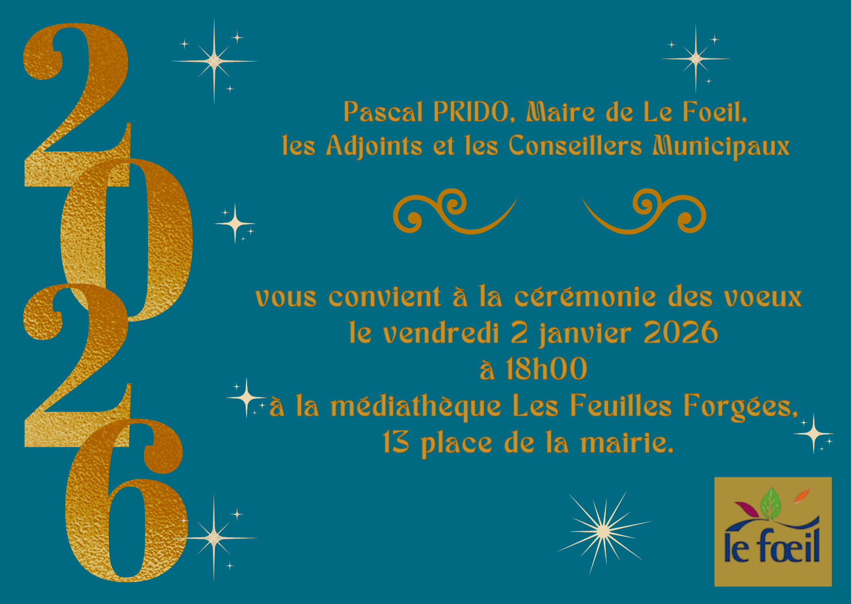 La traditionnelle cérémonie des vœux est programmée le 02 janvier 2026 à 18h00.