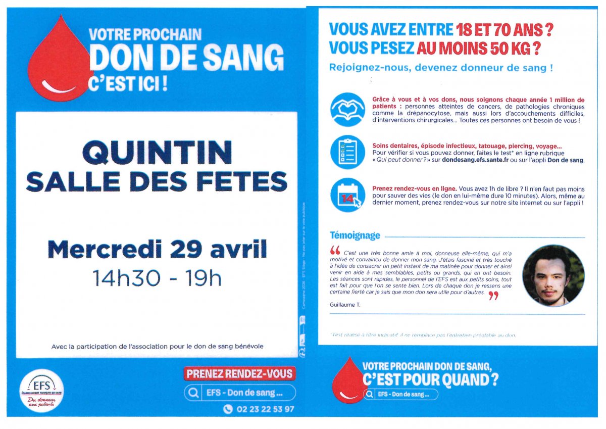 DON DU SANG A QUINTIN LE 29 AVRIL 2026