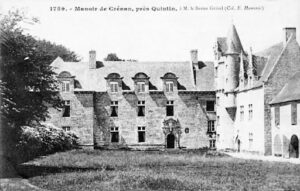 Construit à la fin du XVIᵉ siècle, il se distingue par sa tour d’escalier hexagonale, sa porte à colonnes et son fronton triangulaire typique de la Renaissance bretonne.