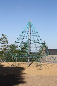 Parfaitement intégrée à l’aire de jeux, la toile d’araignée est un véritable défi pour les jeunes aventuriers ! Ce grand filet d’escalade permet aux enfants de grimper, se balancer et tester leur équilibre en toute sécurité. Un jeu qui allie amusement, agilité et esprit d’équipe.